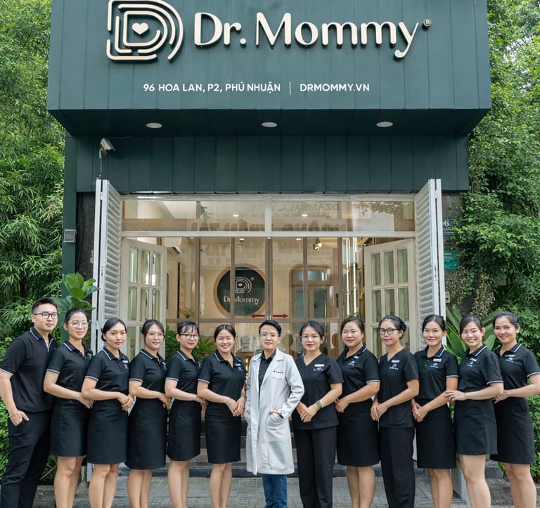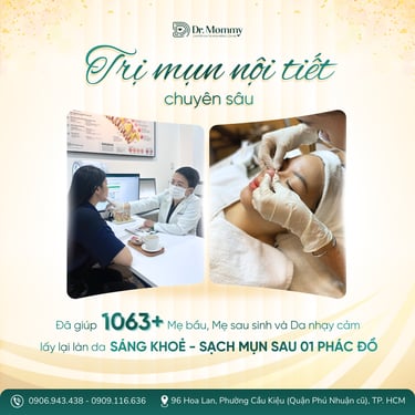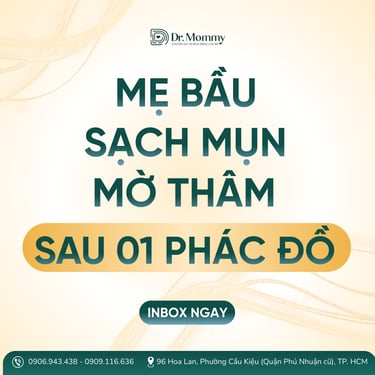 Chào mẹ bầu thân mến! Chúng tôi là Dr. Mommy, với hơn 14 năm kinh nghiệm điều trị da cho các mẹ, giúp 7,500+ mẹ chiến thắng mụn nội tiết.