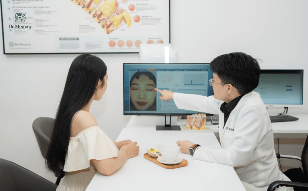 Trong quá trình điều trị, bác sĩ và chuyên viên tại Dr. Mommy sẽ hướng dẫn bạn chế độ chăm sóc da và ăn uống phù hợp để tối ưu hóa hiệu quả. Thông thường, bạn sẽ được khuyên hạn chế đồ cay nóng, nhiều dầu mỡ, đồ ngọt và tăng cường rau xanh, trái cây.